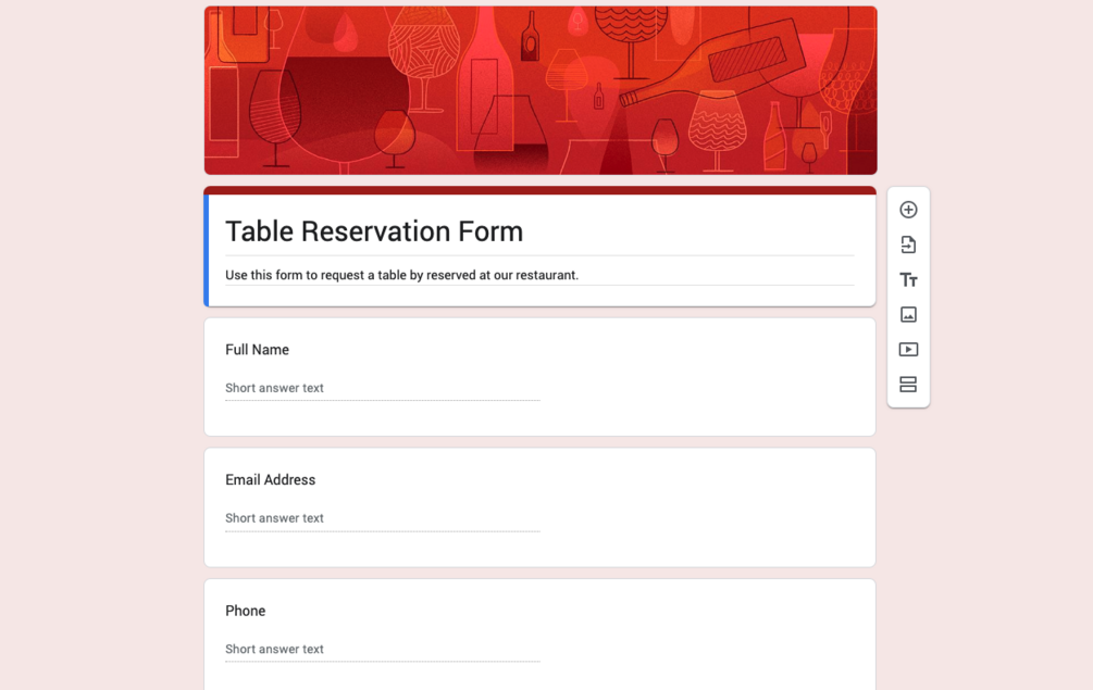 See details of what is included on this page - Google Forms - Table Reservation Form Template.