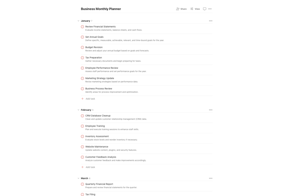 Use this template for planning out tasks in your business.